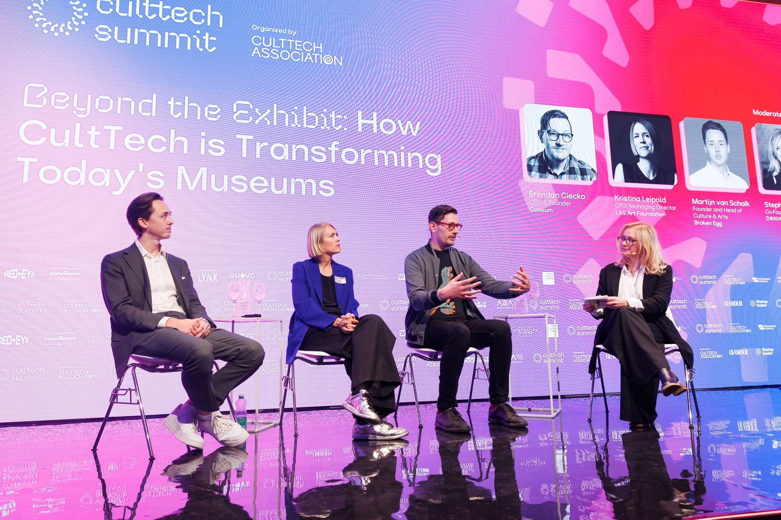For us at Cuseum, the highlight was undoubtedly the panel discussion titled “Beyond the Exhibit: How CultTech is Transforming Today’s Museums.” Moderated by the dynamic Stephanie Meist, the panel featured our very own Brendan Ciecko, alongside two brilliant minds: Kristina Leipold of LAS Art Foundation and Martijn Van Schaik of Broken Egg. Together, they dove deep into the ways technology is redefining museums not only as institutions but as spaces of innovation, education, and community.
